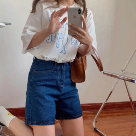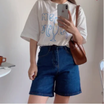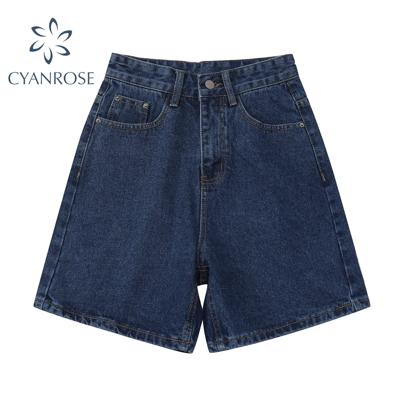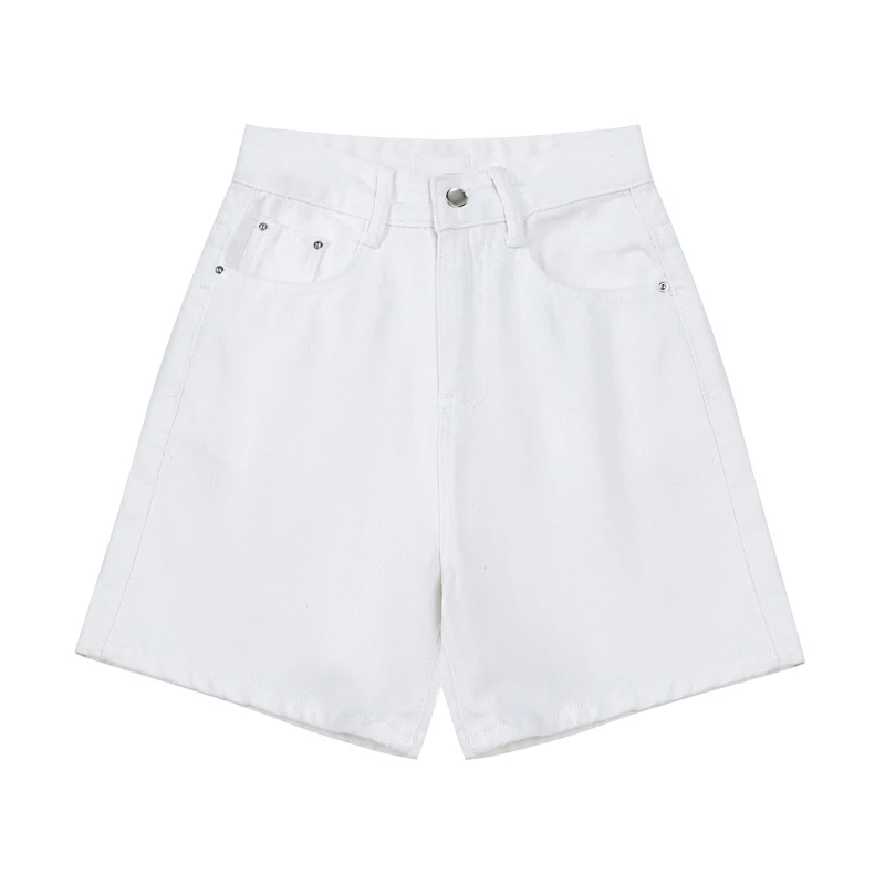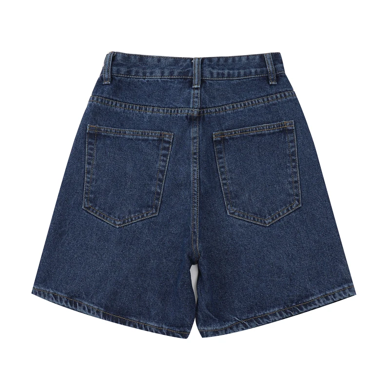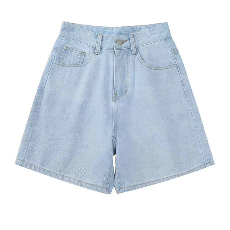 Шорты женские джинсовые с завышенной талией, модные брюки с широкими штанинами, на пуговицах, уличная одежда, повседневные винтажные короткие джинсы, лето 2021
