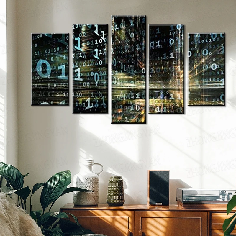 5 панельных компьютерных настенных картин, цифровые технологии, абстрактный дизайн, рисование по номерам, холст, плакат, абстрактные картины для домашнего декора