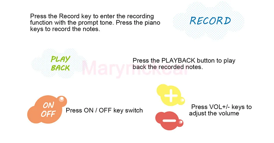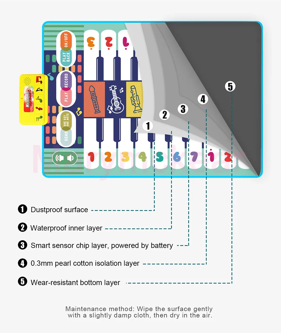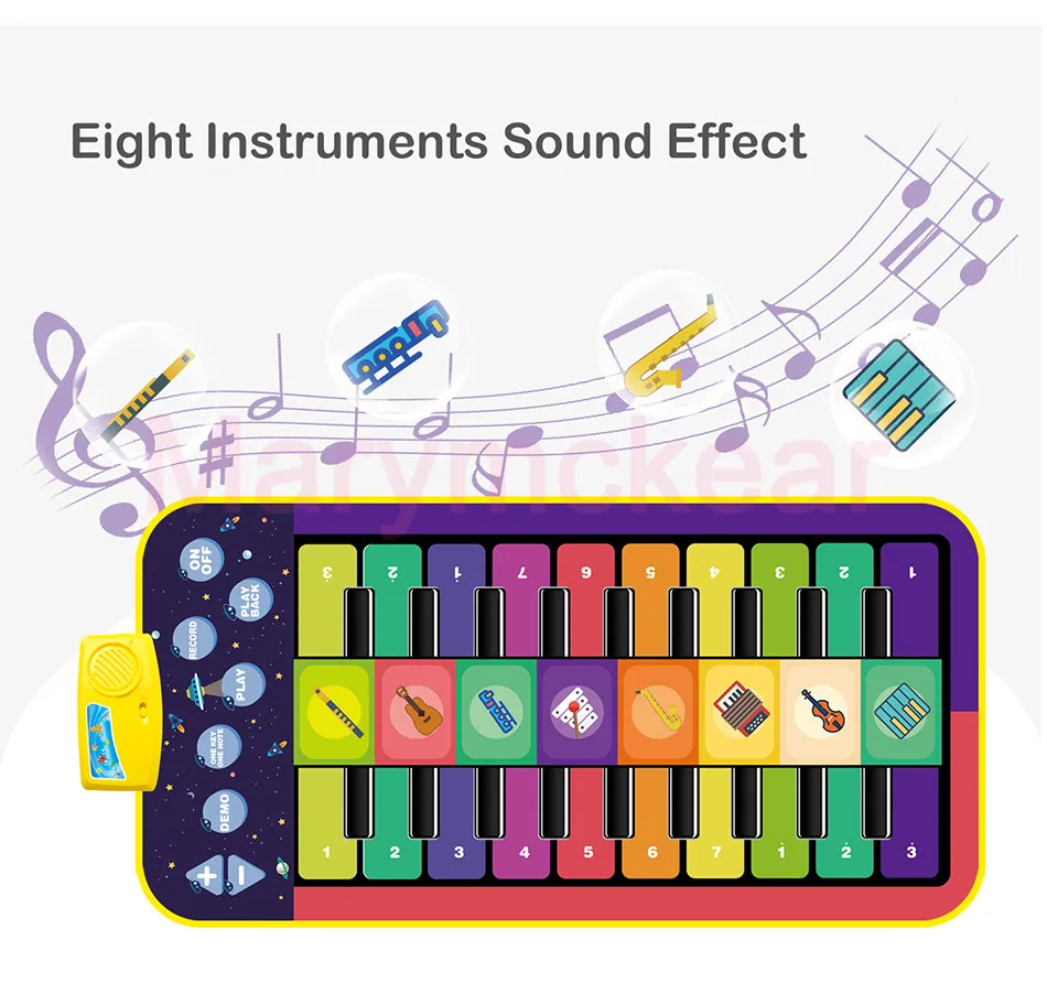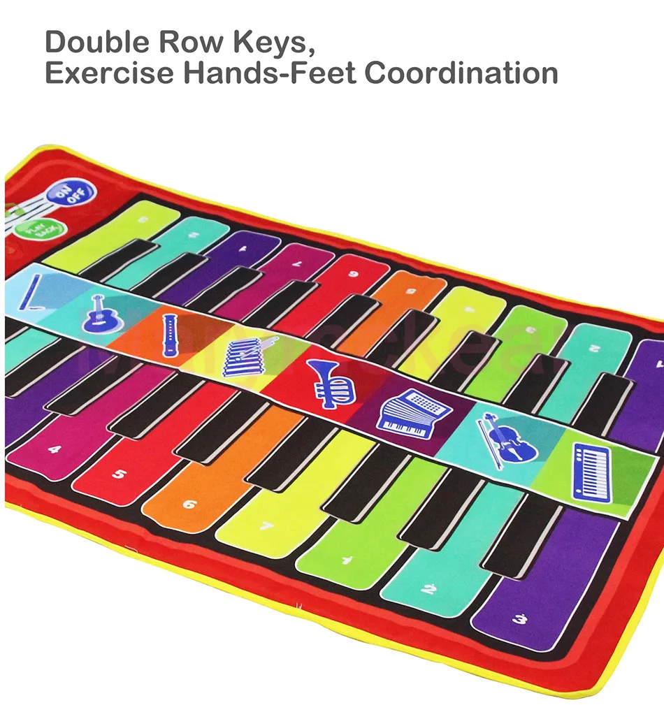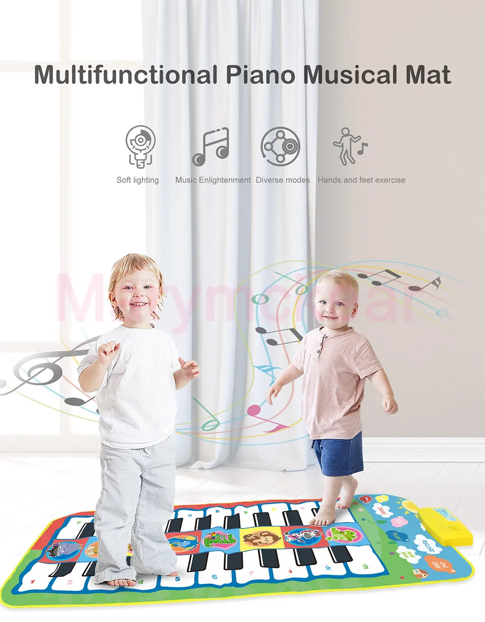 ♬Мягкий и складной музыкальный коврик не скользит и водонепроницаемый дизайн, гладкий без заусенцев. Изготовлено с дизайном, плотно прошитым, который будет более прочным и износостойким.♬Изящный дизайн с милым рисунком, привлекающий внимание ребенка.♬Встроенный в богатую аккомпанементацию песни, мягкий и приятный звук, красочные и мягкие огни.♬Двухрядные клавиши, можно осуществлять координацию рук и ног ребенка.♬Восемь инструментов звукового эффекта: флейта, гитара, Oboe, саксофон, аккордеон, скрипка, пианино. Регулируемая громкость, запись и воспроизведение функции.♬Слой микросхемы Smart sensor, питание от аккумулятора. Коврик оснащен динамиком высокого качества звука HD.♬Дети не только развивают свой музыкальный интеллект, тренируют свои руки и мозги, тренируют слуховой, но и привлекают внимание ребенка и приносят чистое удовольствие через этот коврик.