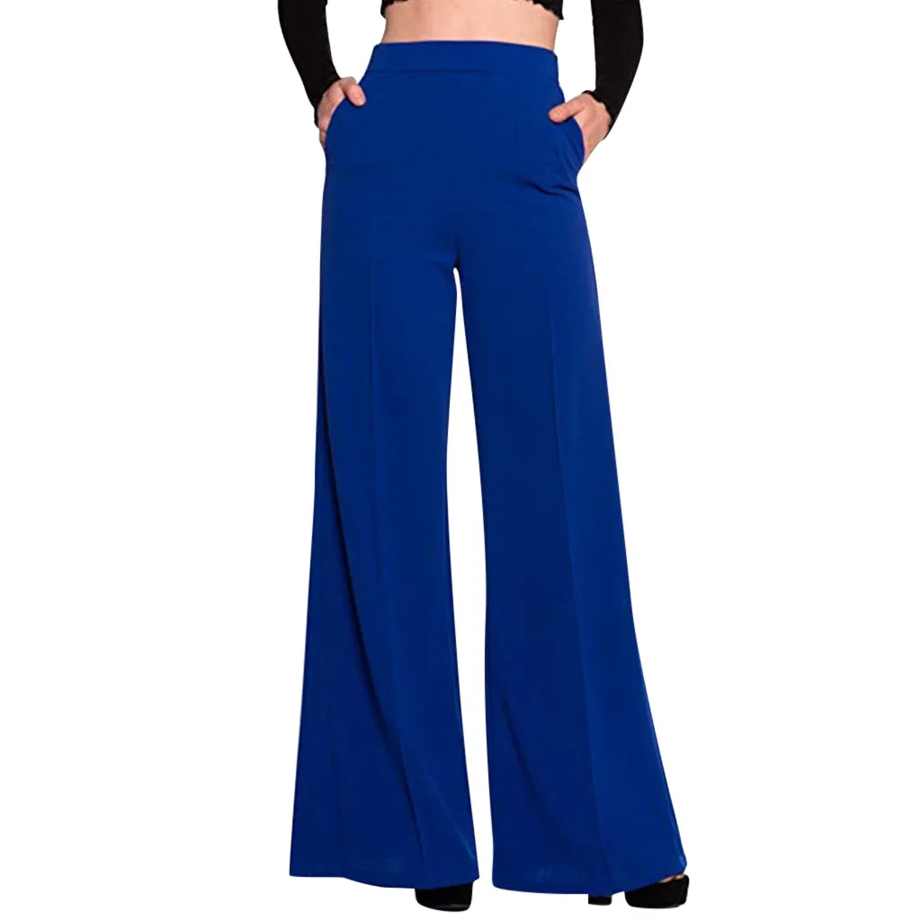 Женские расклешенные брюки с карманами, повседневные Черные Брюки-клеш с завышенной талией, простые длинные брюки с эластичным поясом, S-3XL на весну