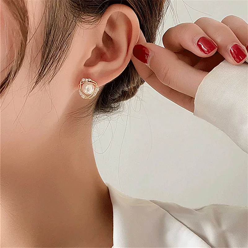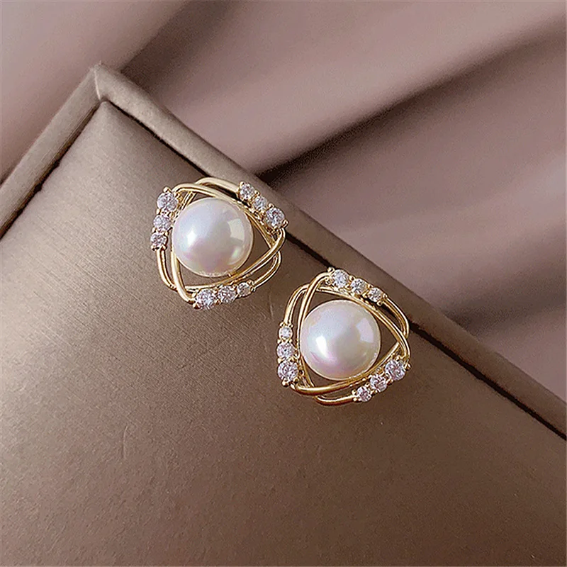 Серьги-гвоздики с жемчугом XIYANIKE золотого цвета Стразы геометрические простые серьги из сплава 2021 женские модные ювелирные изделия для вечеринок