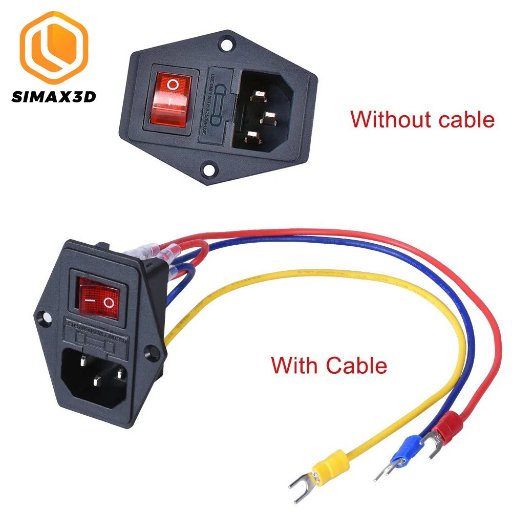 SIMAX3D черный 10A 250V рокер Мощность переключатель переменного тока Мощность розетки с красным тройной кулисный выключатель с плавким предохранителем модуль Разъем для 3D-принтеры Запчасти