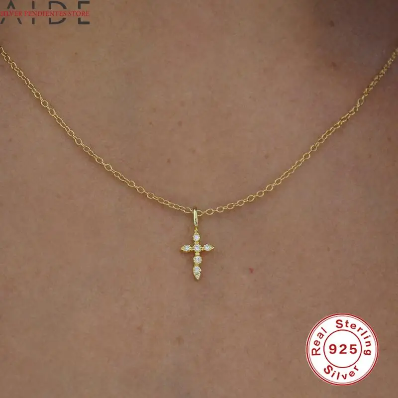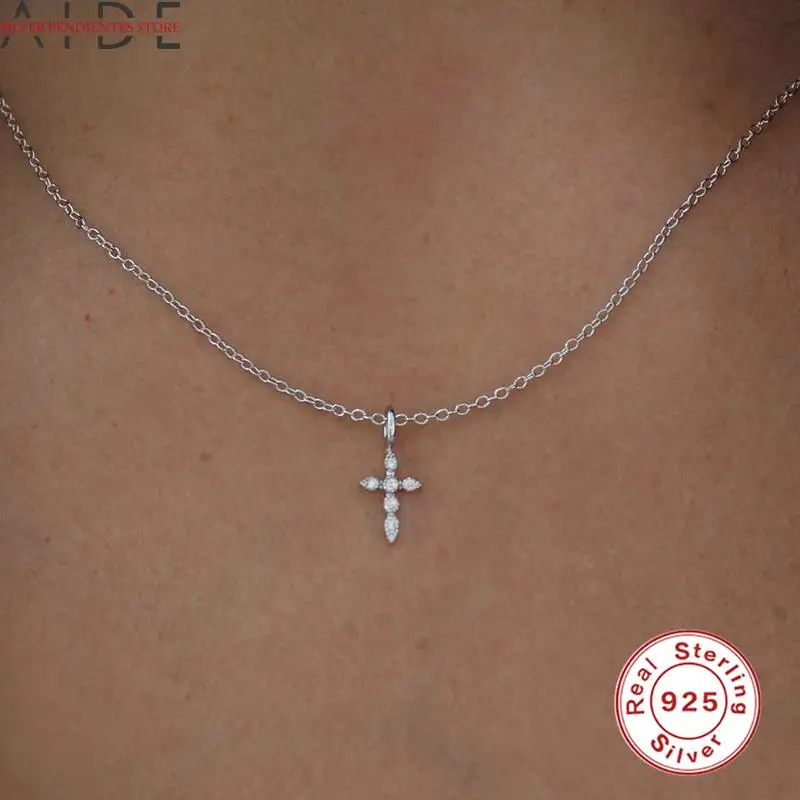 Ожерелье до ключицы из серебра 925 пробы с подвеской-крестом