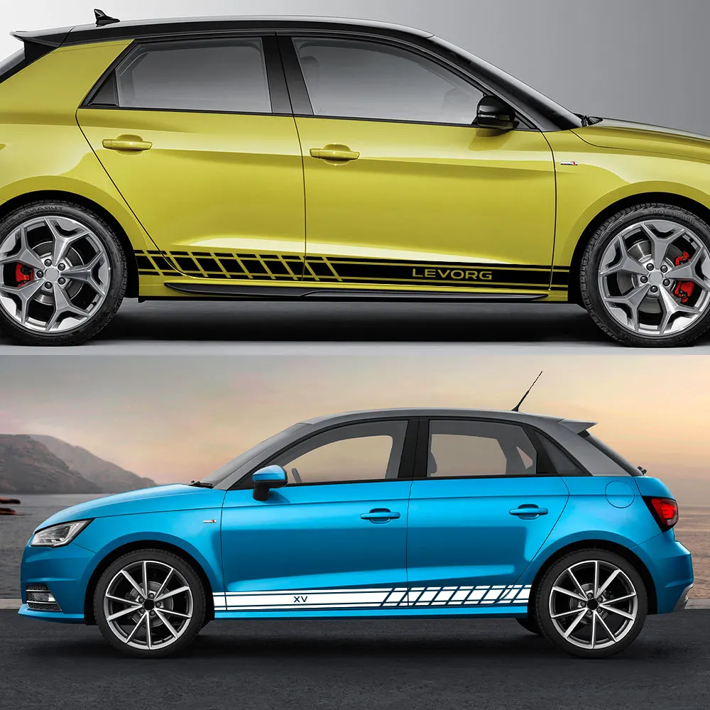 2PCS Sport Auto Door Side Skirt Stripes Decal Car Sticker For Audi ...