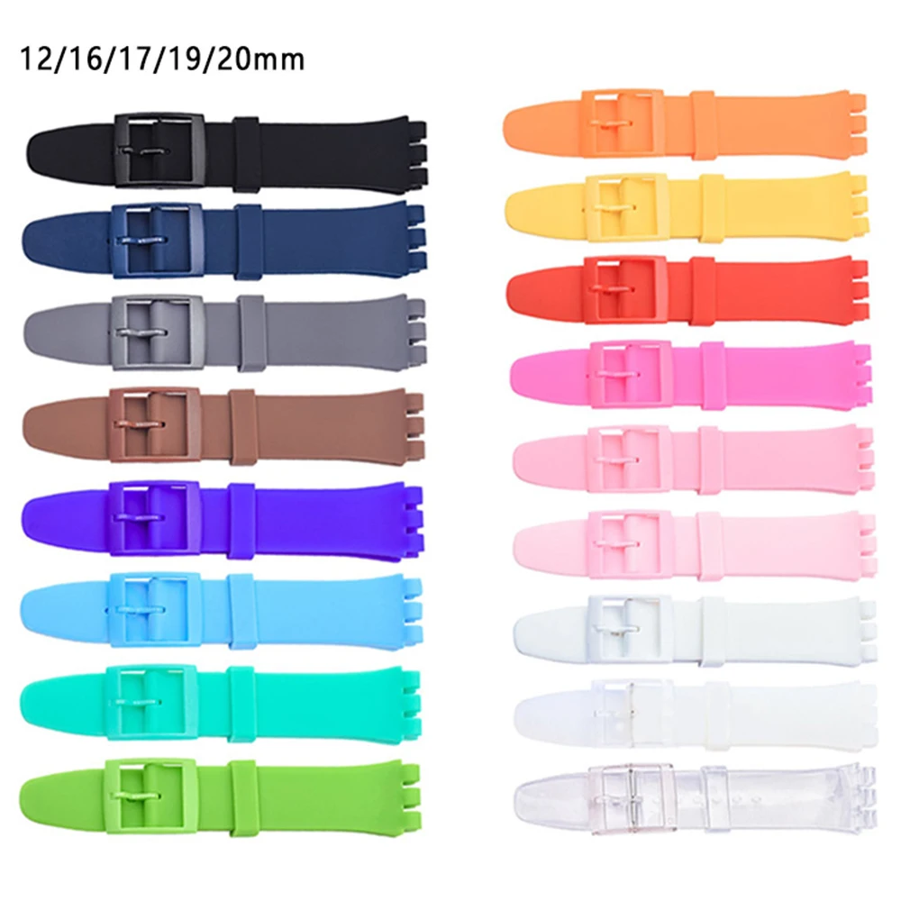 Ремешок силиконовый для часов Swatch Band, Цветной Резиновый сменный спортивный браслет, аксессуары для часов, 12 мм 16 мм 17 мм 19 мм 20 мм