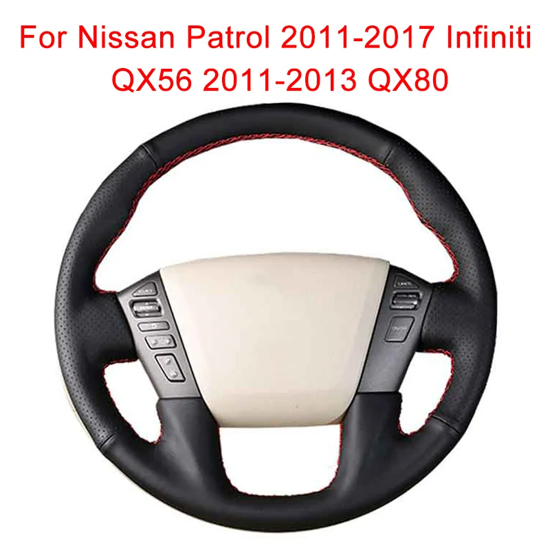 По индивидуальному заказу чехол рулевого колеса автомобиля для Nissan Patrol 2011-2017 Infiniti QX56 2011-2013 QX80 Кожаная оплетка рулевого колеса