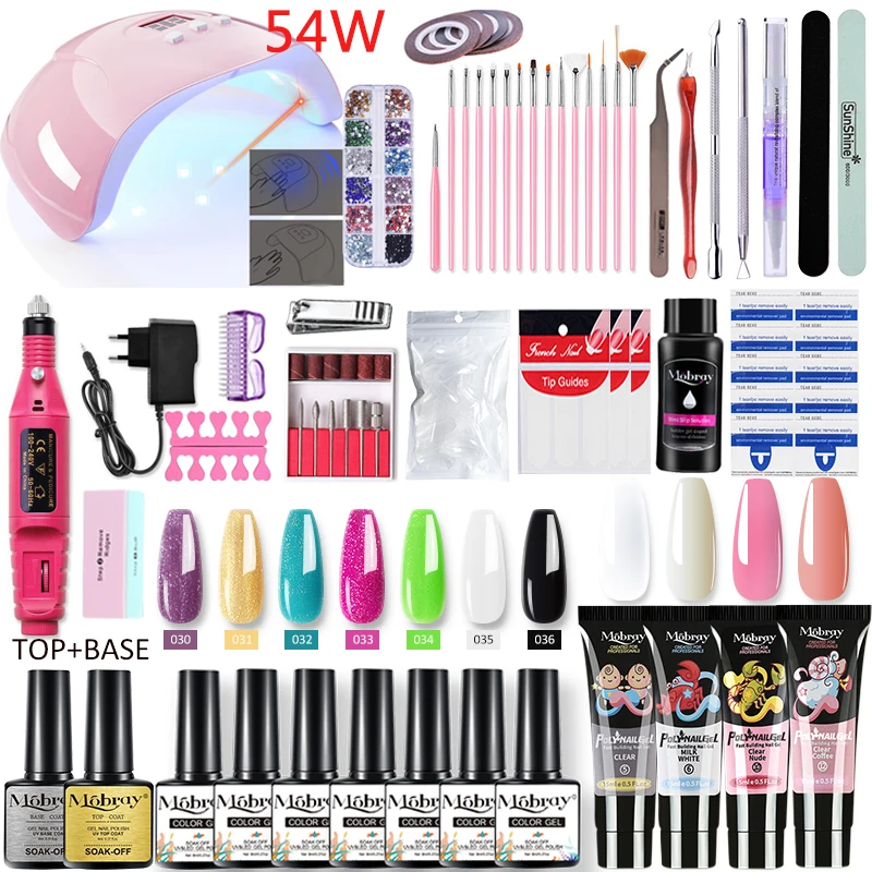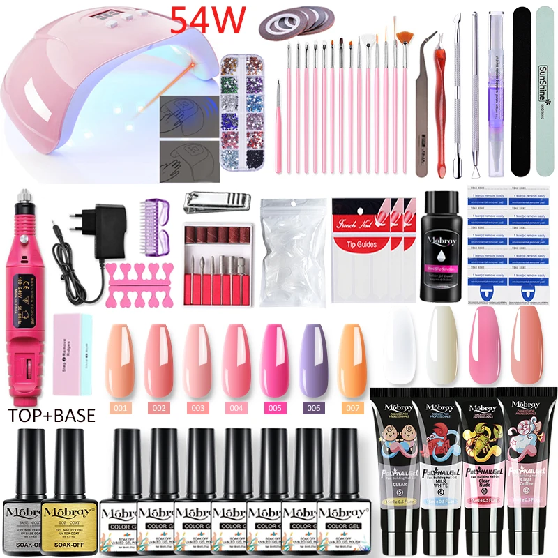 Набор для наращивания ногтей Mobray, УФ-гель, Полупостоянный Набор для маникюра с лампой, полигель для наращивания ногтей