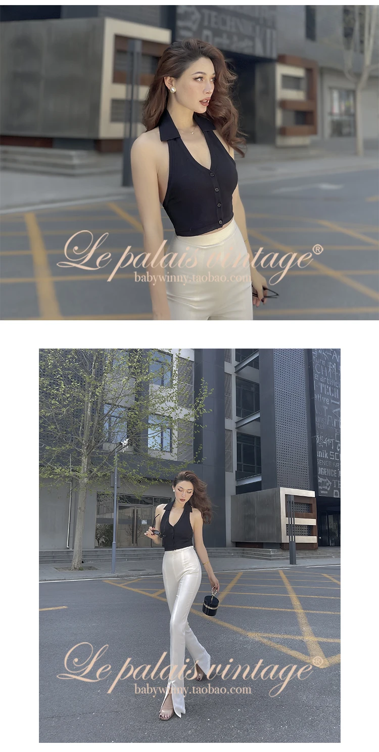 Винтажные Весенние новые оригинальные модные Универсальные облегающие брюки Le Palace с разрезом и высокой талией для женщин, элегантные белые расклешенные брюки, 2021
