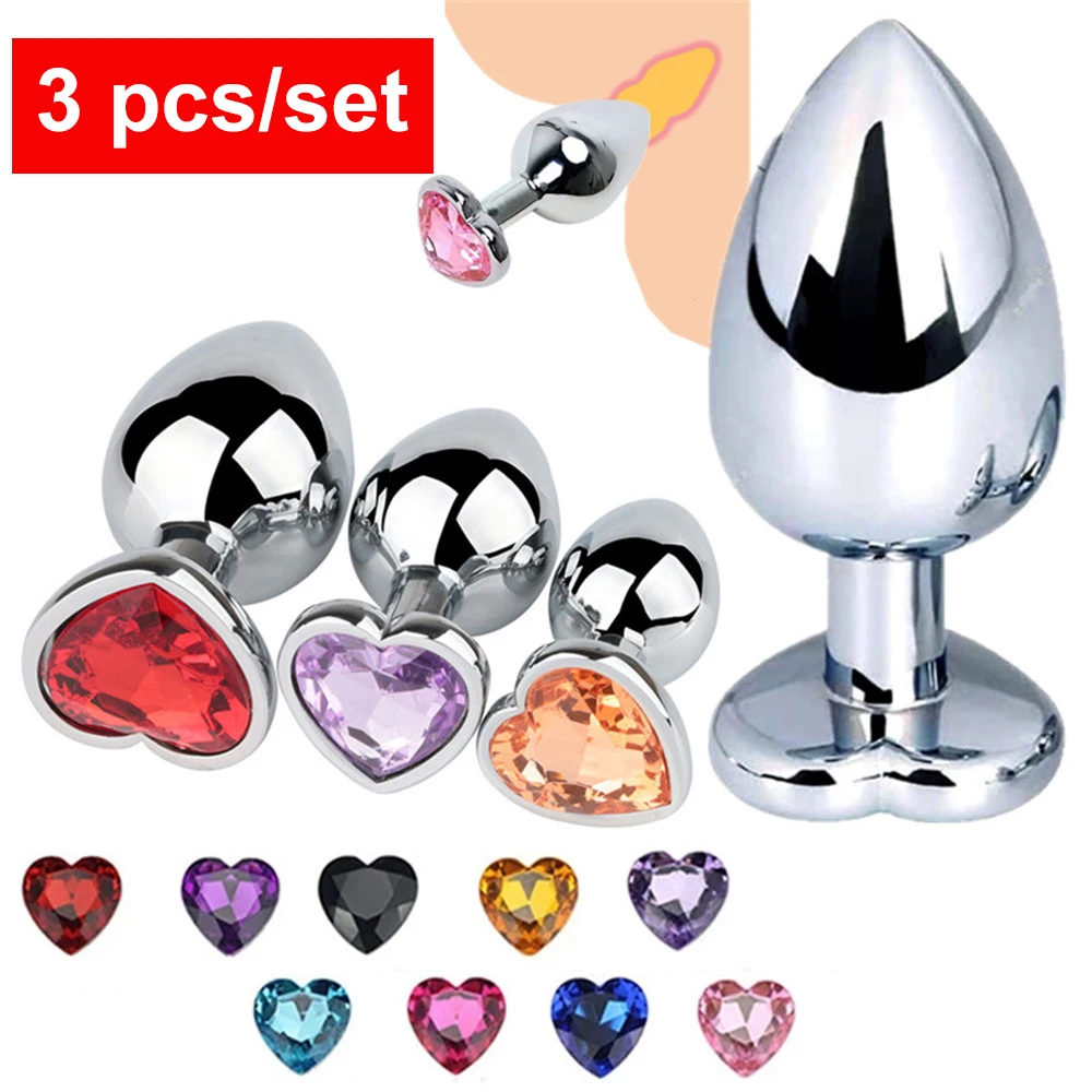3 размера Анальная пробка в форме сердца Нержавеющаясталь с украшением в виде кристаллов Анальная пробка съемный анальный стимулятор-пробка Секс-игрушки простаты массажный фаллоимитатор