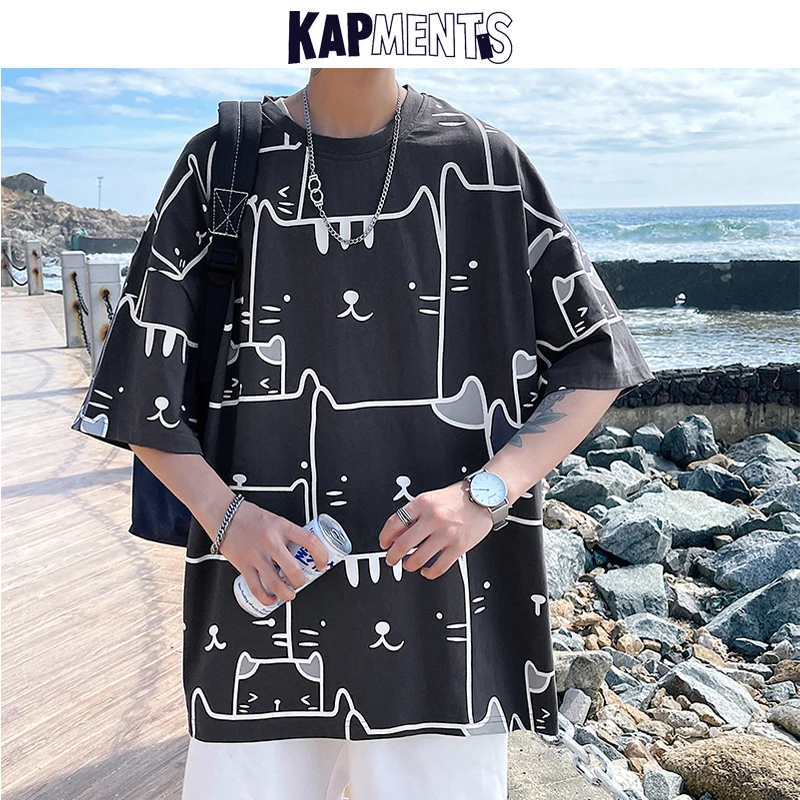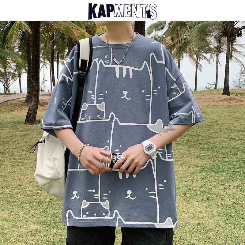 KAPMENTS для мужчин с графическим принтом Harajuku футболки 2021 летние мужские забавные Свободная рубашка мужской Японская уличная одежда футболка 5XL