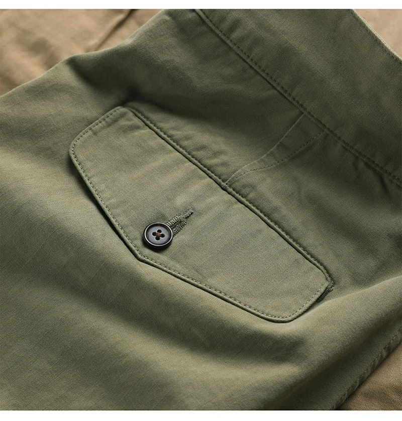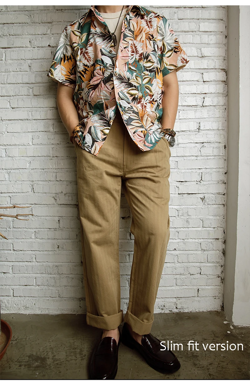 9,5 ткань высокой плотности 9,5 унций, стирается, чтобы придать ей винтажный вид ⦁ Эти брюки для гуркхи имеют слегка зауженный силуэт, который удобно сидит на талии с драпировкой, подходящей через сиденье и бедра ⦁ Передние складки, четыре кармана, пряжки на талии, застежка на молнии, отложной низ ⦁ Доступны два разных размера, пожалуйста, проверьте наши Таблицы размеров ниже