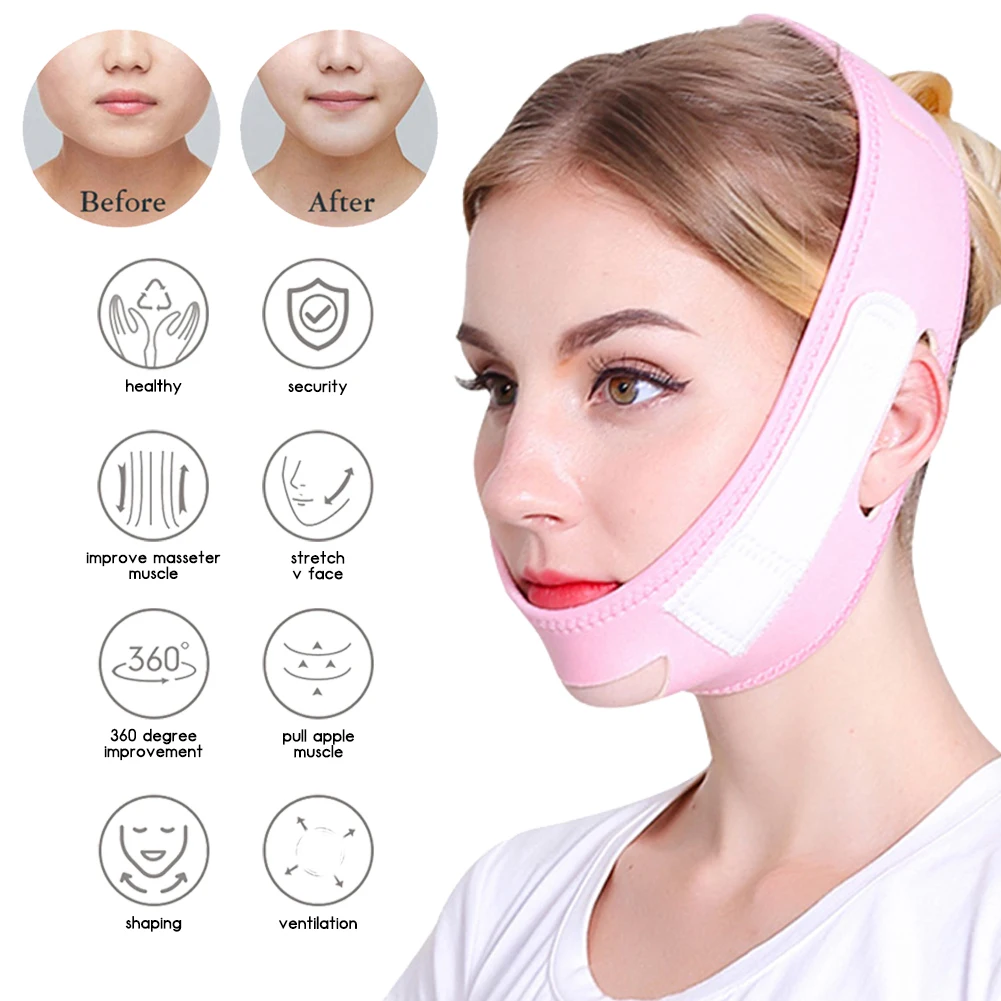 Тонкий v-образный ремень для лица, двойной пояс для лица и подбородка, бандаж для шеи, тонкий пояс для похудения, спортивный инструмент для ухода за кожей лица, против морщин