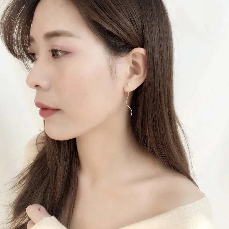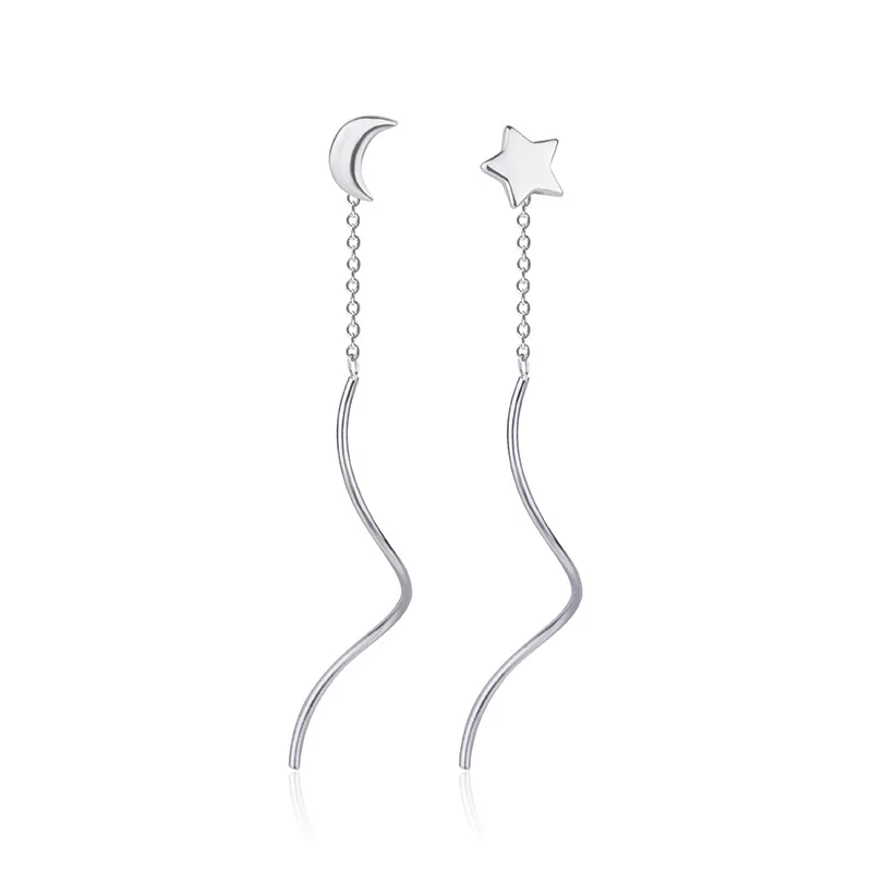 CIAXY 925 пробы серебро Асимметричный звезды и луна серьги длинной кисточкой волнистой линией серьги горяч-продавая ювелирные изделия