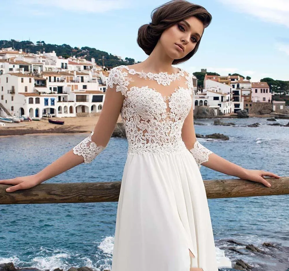 Пляжное свадебное платье, сексуальное прозрачное платье с Боковым Разрезом и открытой спиной, свадебное платье с длинным рукавом, бальное платье для выпускного вечера, элегантные платья для шланга 2022