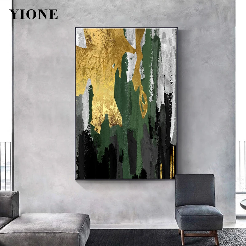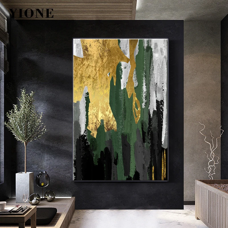 Абстрактный черного и зеленого цвета на холсте маслом на заказ современный роскошный плакат украшения печать, Картина Настенная для Гостиная проход
