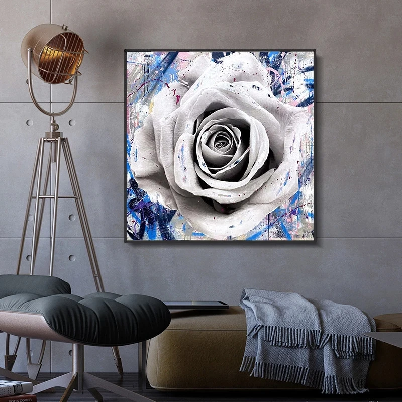 Настенная картина с изображением розы, улицы, граффити, абстрактные постеры и принты, современные настенные картины для гостиной, домашний декор