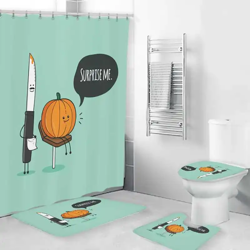 Осенняя полосатая Тыква для Хэллоуина, занавеска для душа, Осенний фермерский коврик на День Благодарения, Противоскользящий коврик, чехол для унитаза, коврик, занавеска для ванной комнаты, набор s