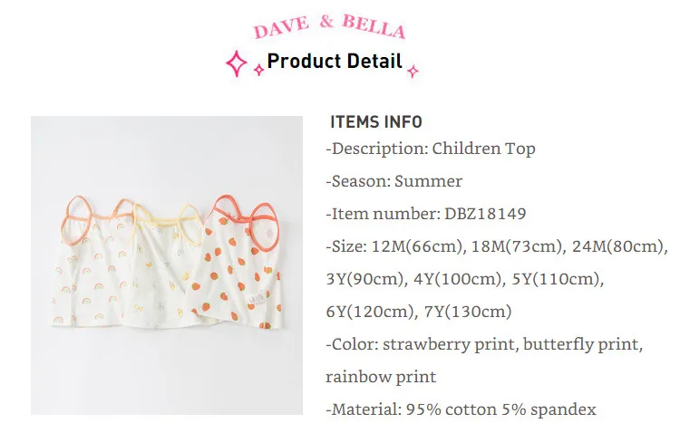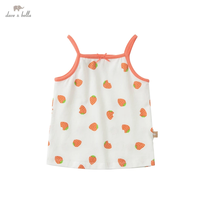 DBZ18149 нижнее белье в стиле бренда dave bellaлетнее платье для маленьких девочек с милым бантом; Платье без рукавов с принтом из мультфильма, футболка для детей, топы для девочек, детская мода, футболки