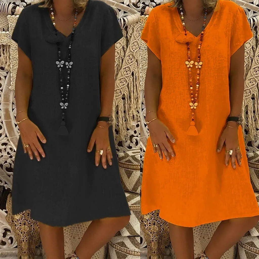 Женское платье из хлопка и льна с V-образным вырезом, Стильное повс...