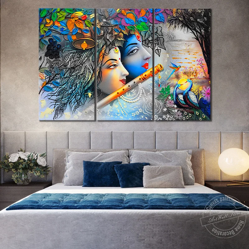 Картина на холсте с изображением индуистского бога радхи кришны, Де...