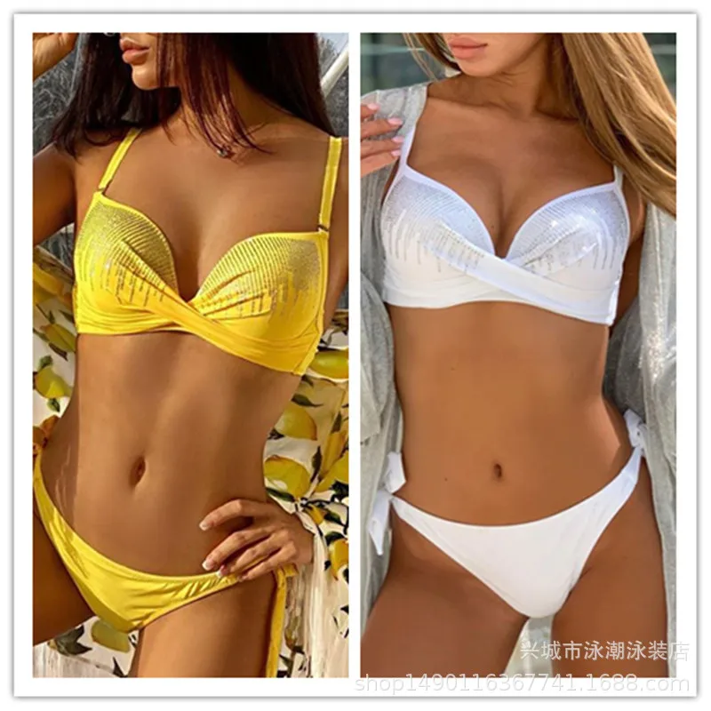 Сексуальное Желтое Бикини с эффектом пуш-ап, женский пляжный купаль...