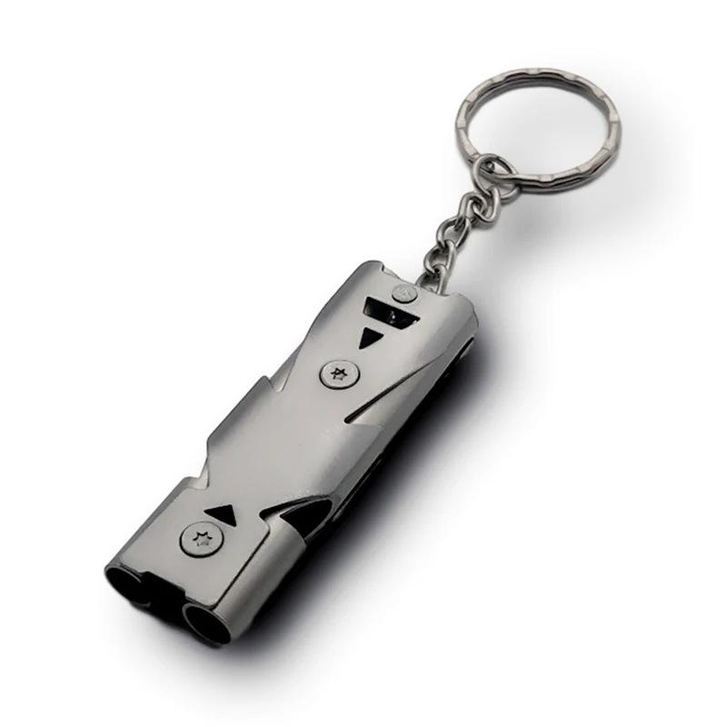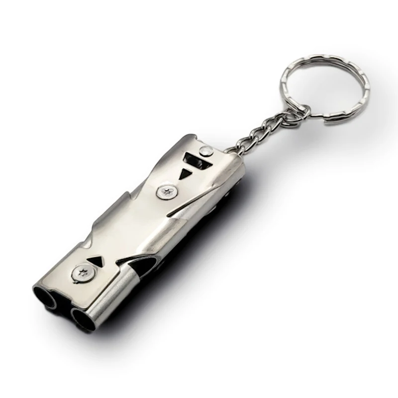 Свисток из нержавеющей стали, свисток с двойной трубкой с высоким децибелем для экстренного выживания, брелок-свисток для чарлидинга, свисток для кемпинга