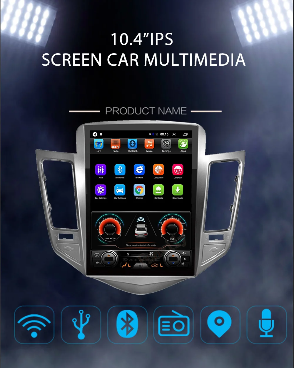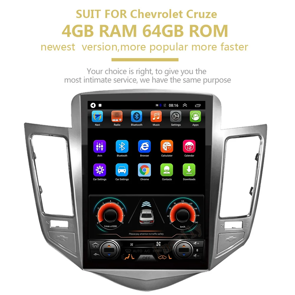 Автомагнитола на Android 10 для Chevrolet Cruze, Dvd-плеер с GPS, мультимедийная система, Авторадио, вертикальный экран, стиль Tesla 10,4 ", 2009 - 2014Об этом товаре