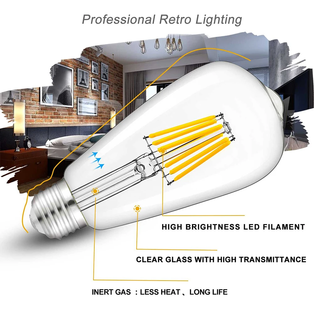 2. Светодиодная лампа A19 1 шт., угол освещения 360 °, мягкий белый 2700K, неточный белый 4500K, 6 Вт = 60 Вт лампа накаливания (Эдисона) репликации