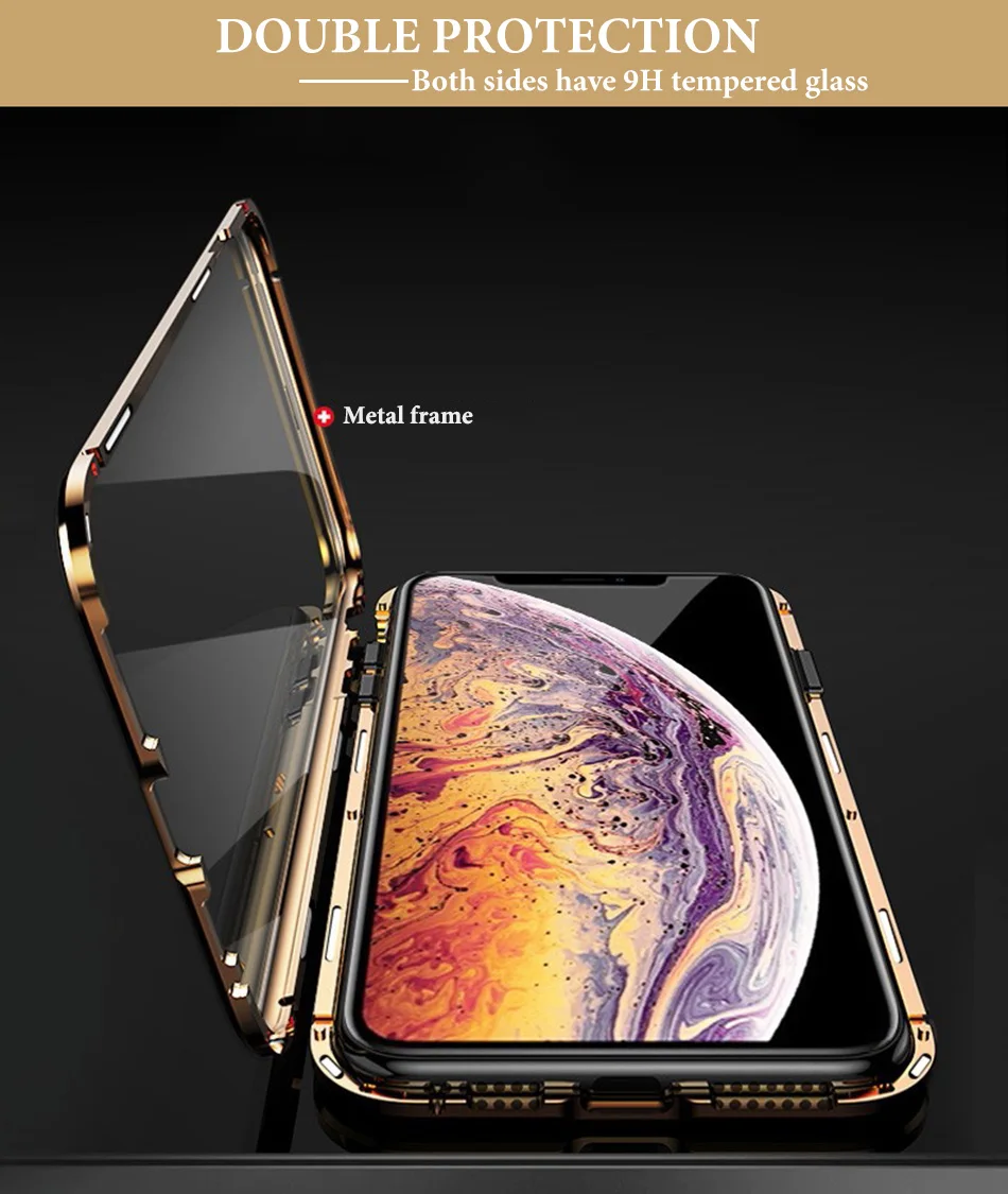 Стеклянный металлический магнитный чехол на весь корпус 360