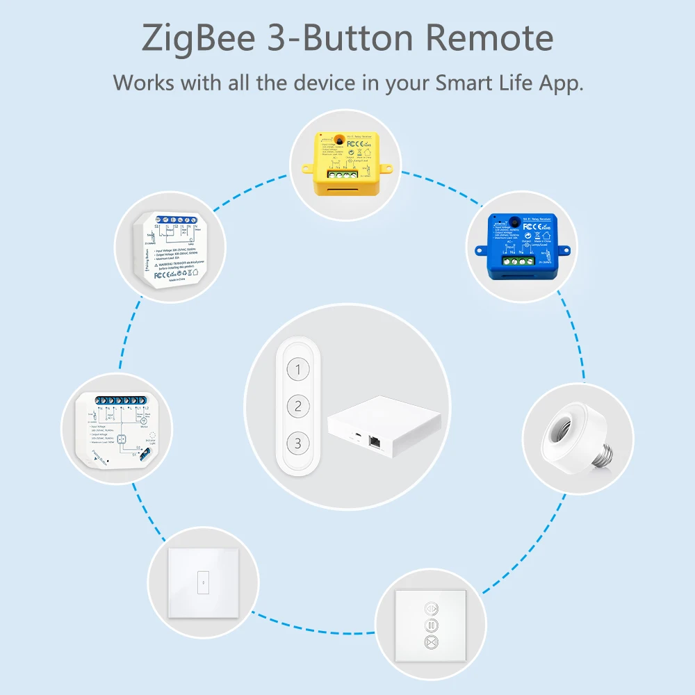 Можно использовать пульт дистанционного управления zigbee для управления всеми устройствами Tuya и настройки через приложение Tuya Smart life.
