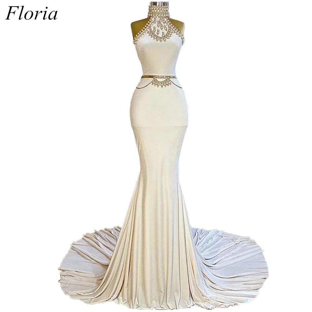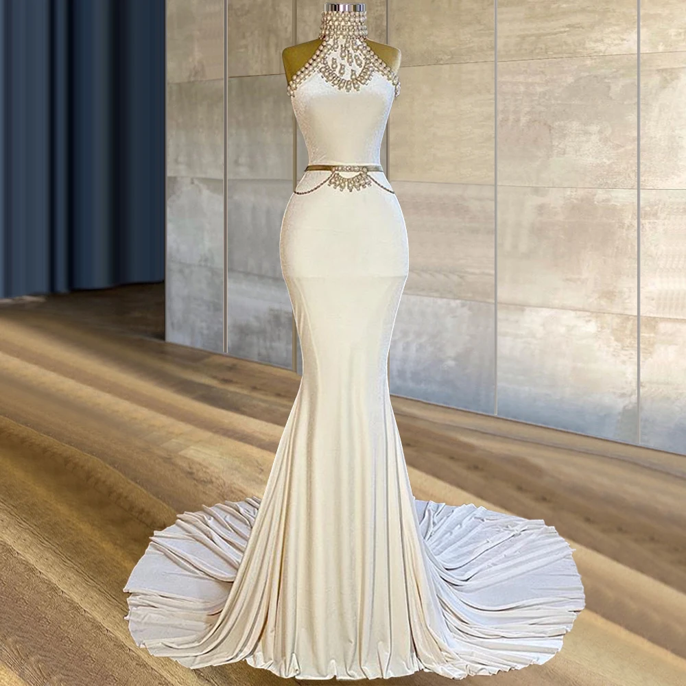 Женское вечернее платье-русалка, длинное вечернее платье с бусинами и шлейфом, простое свадебное платье невесты
