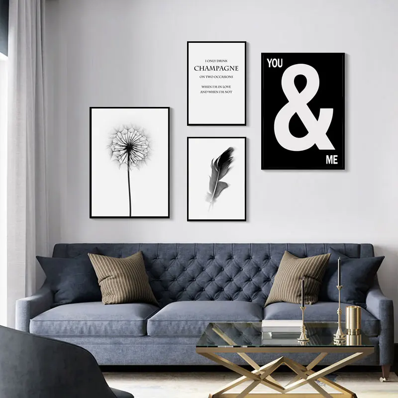 Настенные картины с черно-белыми перьями, современные цитаты из одуванчиков, Картина на холсте, постеры в скандинавском стиле для гостиной, домашний декор
