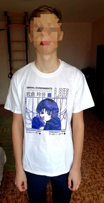 Bad printing. It's just a sticker they put on a shirt. I'm disappointed. Fast delivery. The size is good, I didn't need to take one size larger than my usual one.