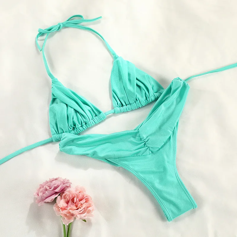 Бикини Miyouj из блестящей ткани, комплект сексуального бикини 2022, женский купальный костюм с лямкой на шее, женский купальник, новая пляжная одежда