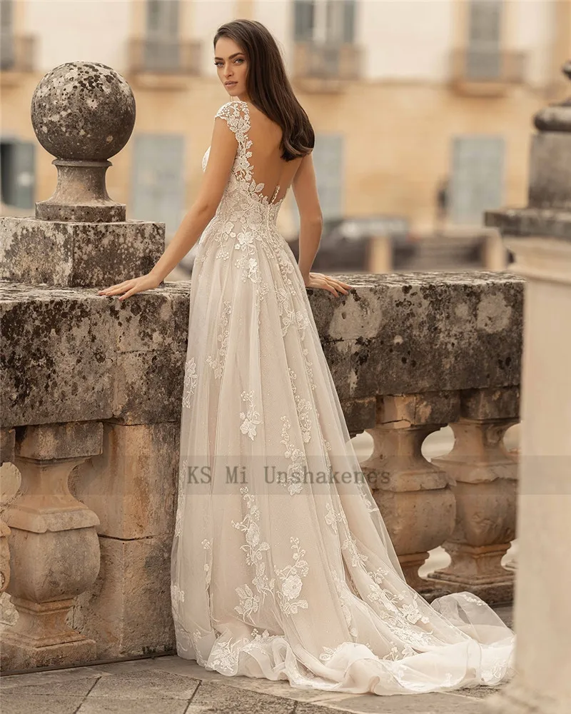 Винтажное свадебное платье в стиле бохо, ТРАПЕЦИЕВИДНОЕ кружевное платье невесты с V-образным вырезом и рукавами-крылышками, летние пляжные свадебные платья с открытой спиной, Robe de Mariee