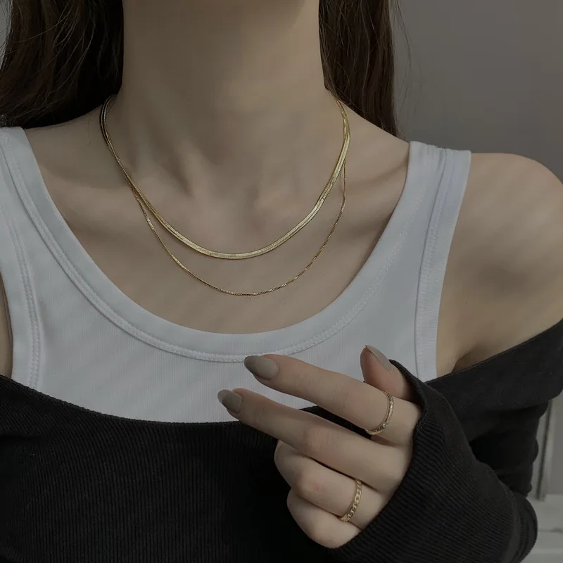 Новинка 2021, ожерелье-цепочка для женщин, готический стиль, золотой цвет, Двухслойное колье, ожерелье, простое модное ювелирное изделие, воротник