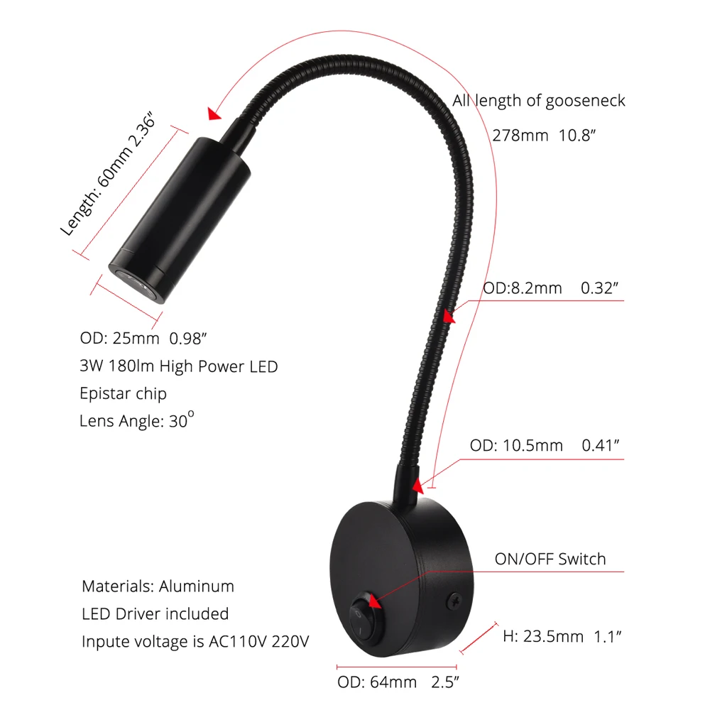 Лампа для чтения настенный светильник лампа 3W Гибкие Ванная комнат...