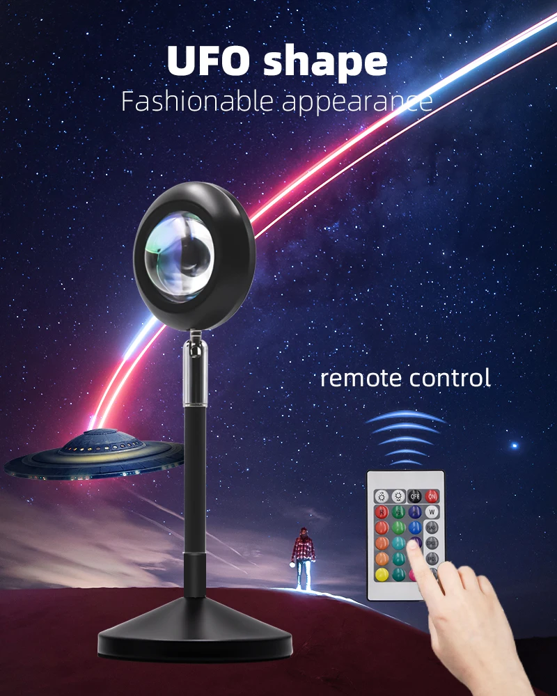 Проекционная RGB-лампа Oobest С закатом, цветной романтический светильник С закатом, вращающийся на 360 напольный стенд для декора спальни