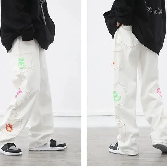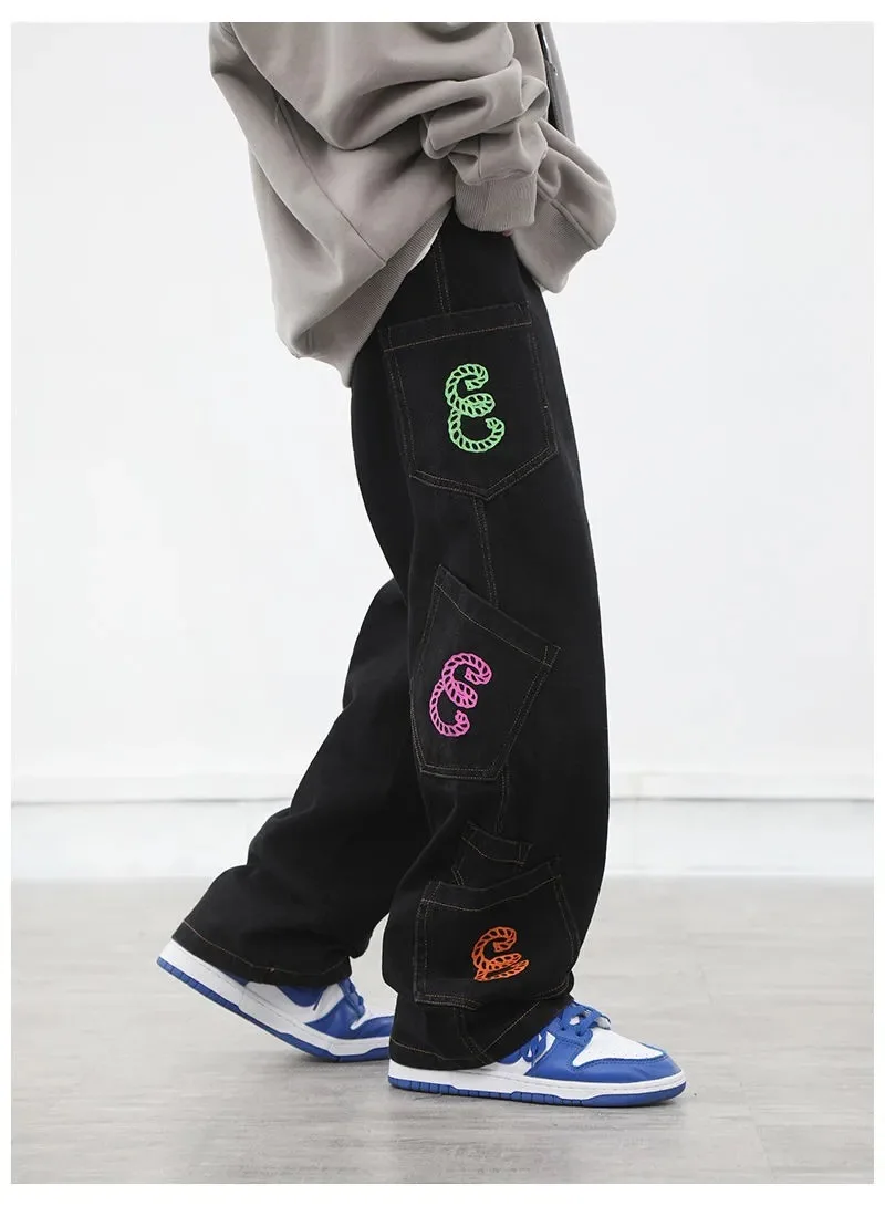 Брюки-карго мужские и женские прямые с карманами и надписью, уличная одежда в стиле Харадзюку, повседневные джинсовые штаны, джинсы оверсайз Ретро, 2021