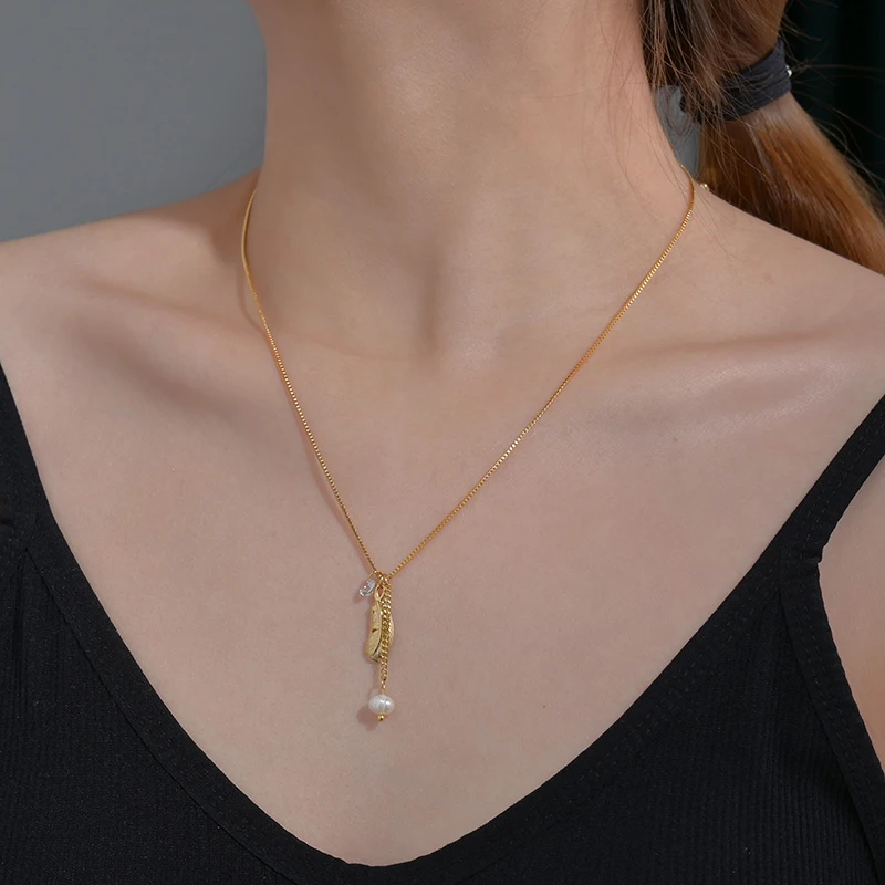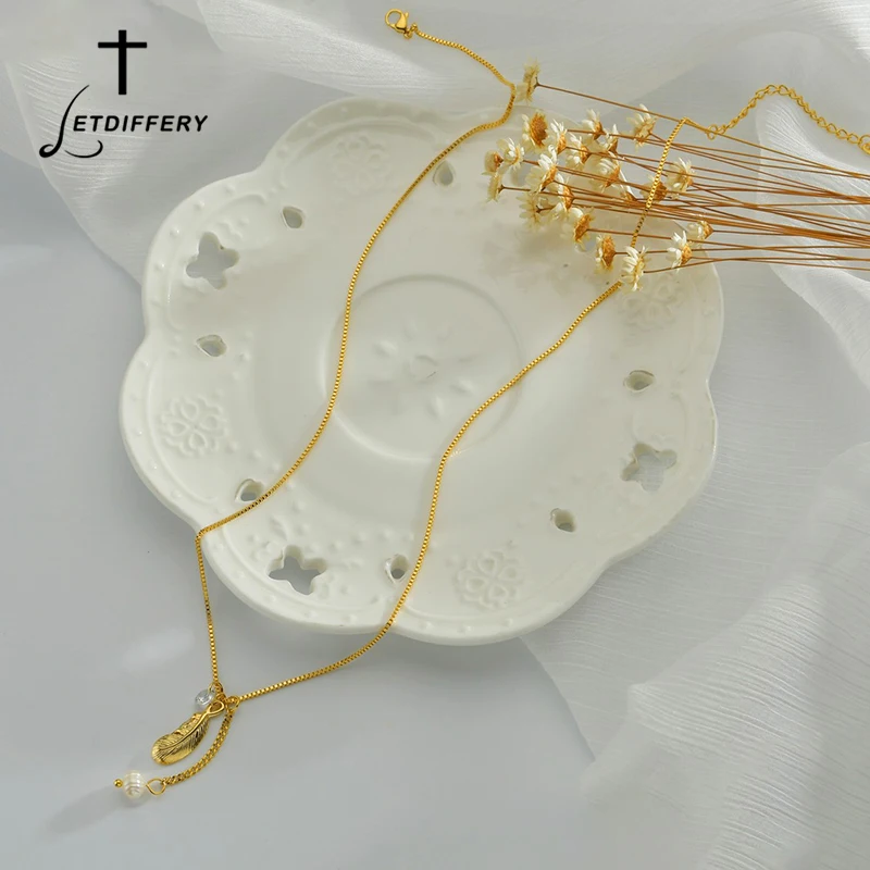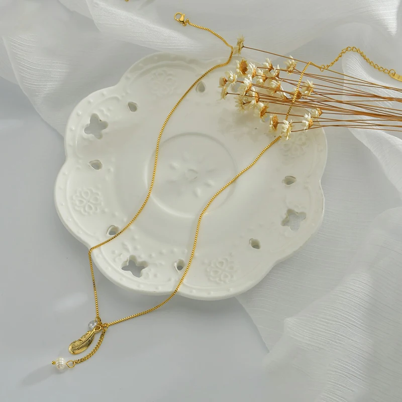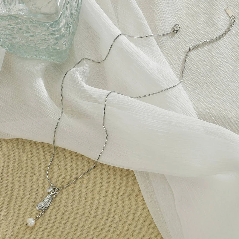 Ожерелье женское, из нержавеющей стали, с перьями и жемчугом