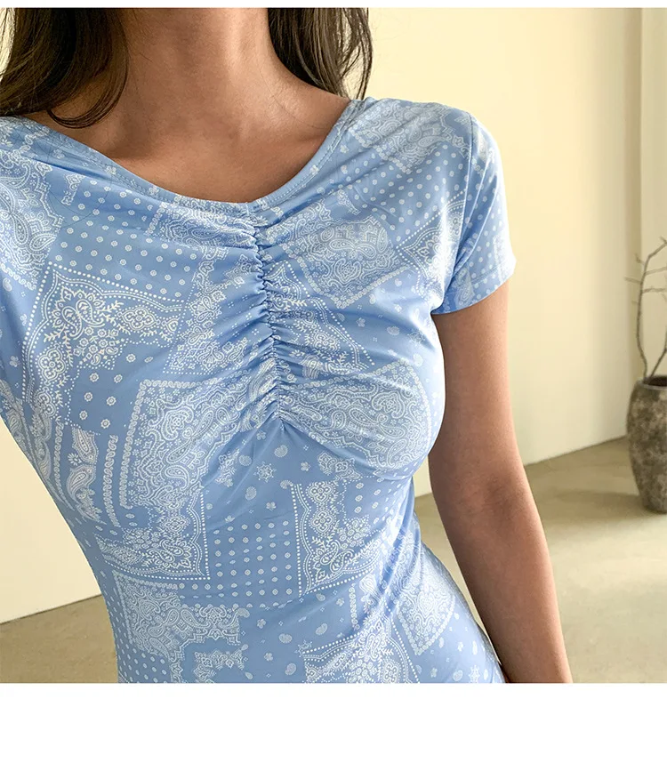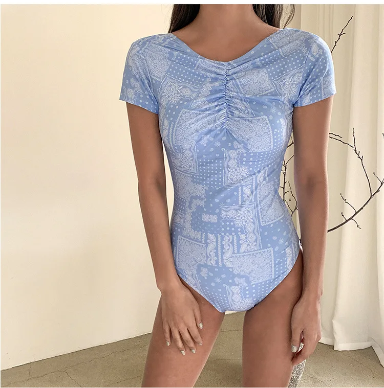 Женский слитный купальник с открытыми плечами, с принтом и коротким рукавом, бикини пуш-ап с высокой талией, купальный костюм, корейский, 2021