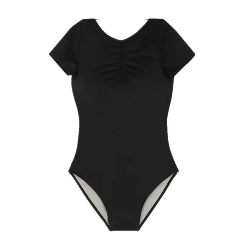 Пикантный слитный купальник с коротким рукавом, Женская однотонная ...