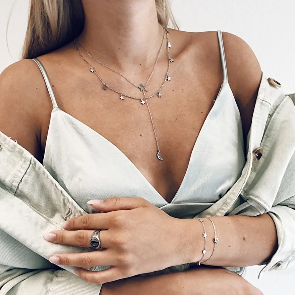 Тип товара: ожерелье-цепочкаТип ожерелья: луна, звездаОжерелья
