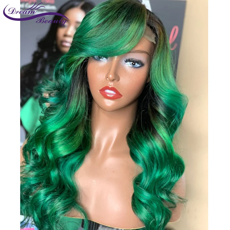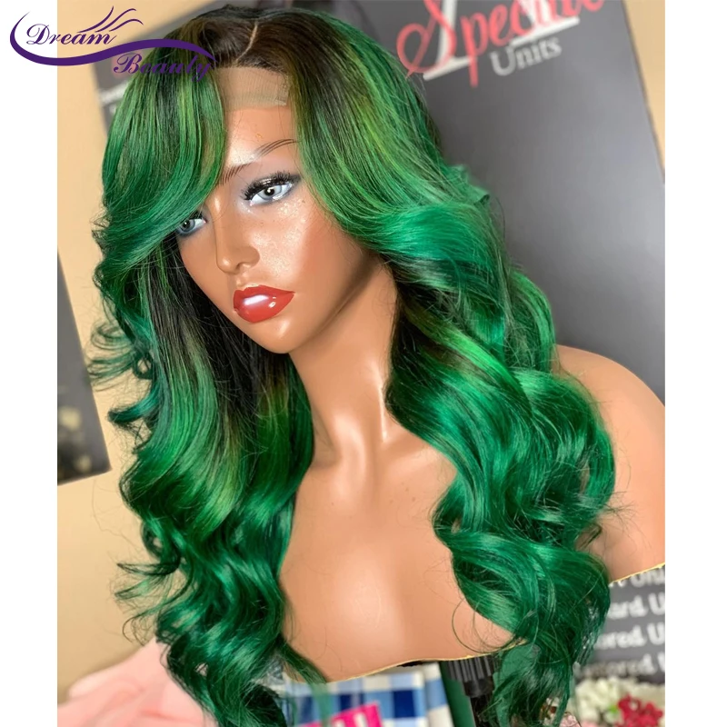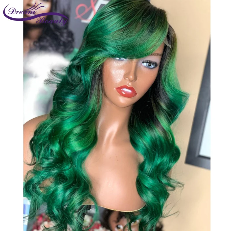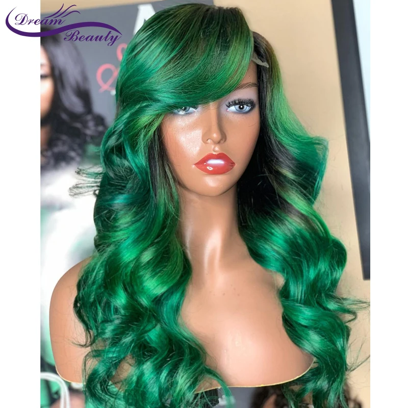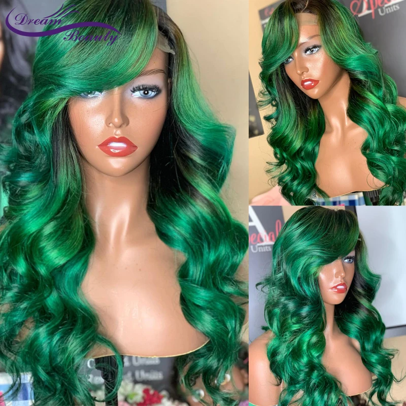 Темно-зеленый 13x4 парик из человеческих волос на сетке спереди для...