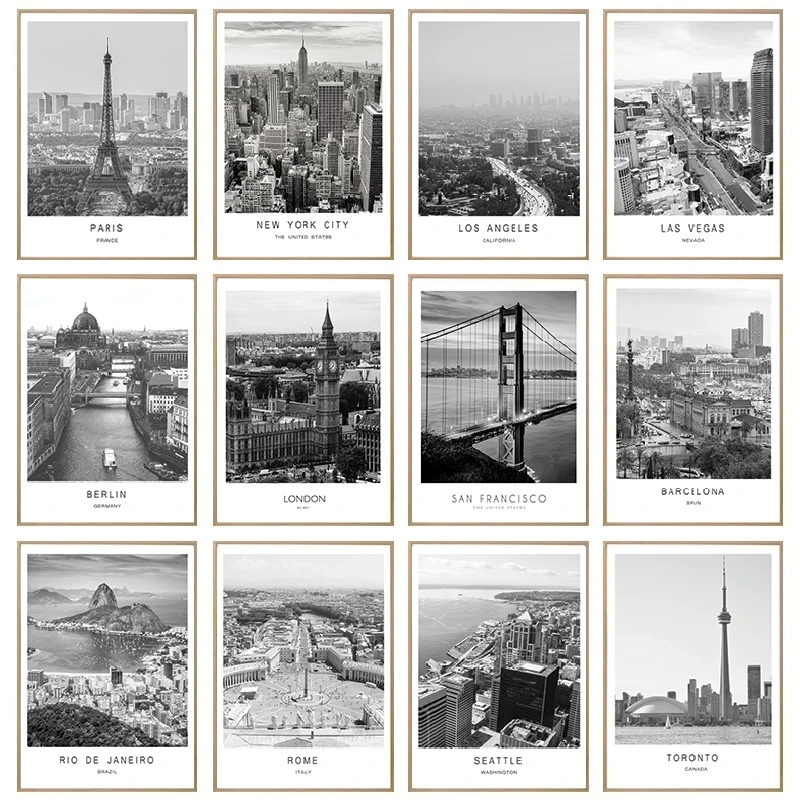 ВИНТАЖНЫЙ ПЛАКАТ, картина, черный, белый, пейзаж города, Париж, Лондон, Нью-Йорк, плакат, принты, скандинавский стиль, Настенная картина