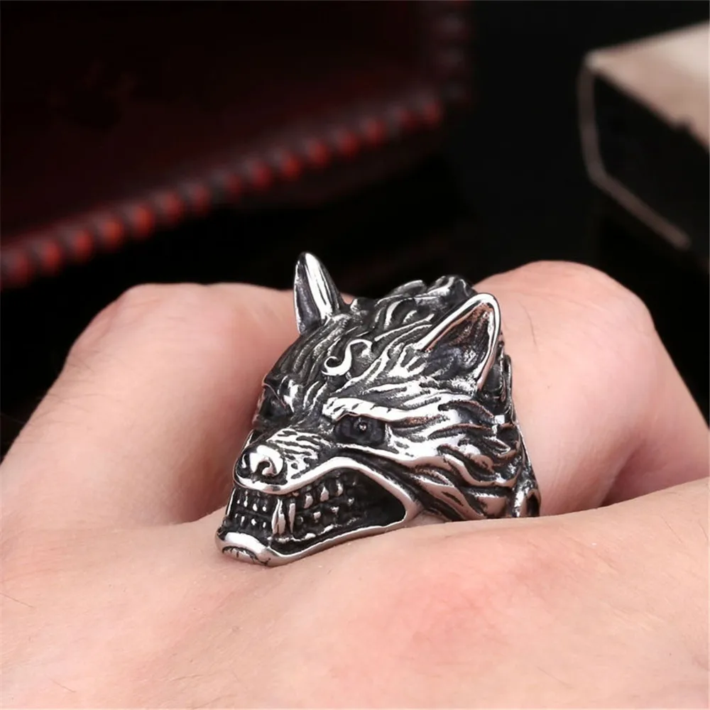 Мужское кольцо в стиле викингов, серебряное кольцо в стиле ретро с волчьим кольцо в виде головы волка, аксессуары для мотоцикливечерние