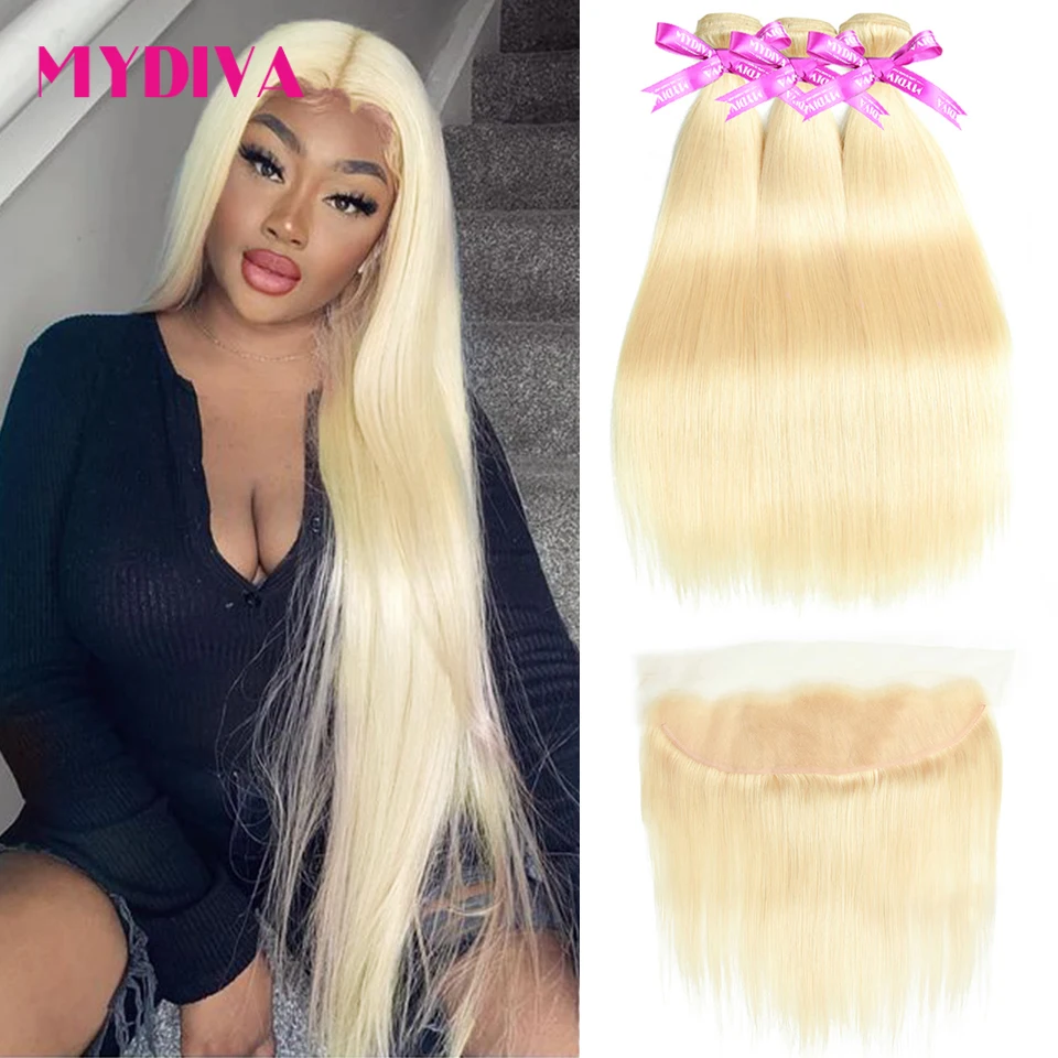 Пряди светлых прямых волос с застежкой, 3 пряди чка, 30 дюймов, 13 х4, Mydiva, 613