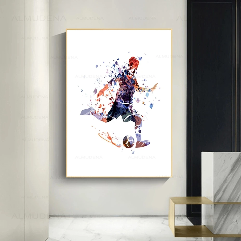 Постер для футболиста, акварельный спортивный Холст, настенная живопись, настенные художественные картины для детской комнаты, Скандинавское украшение для дома