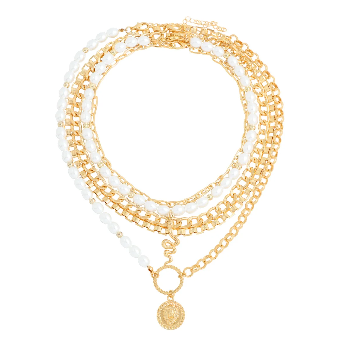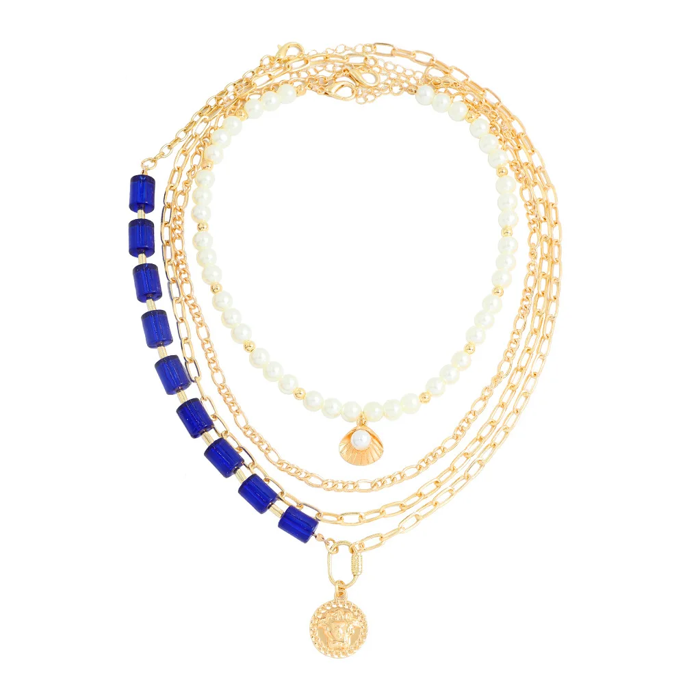 Ожерелье женское многослойное с искусственным жемчугом, цепочка с к...