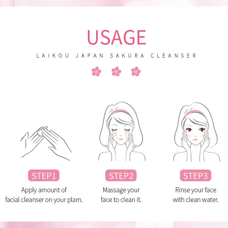 Cleanlalkou Япония Сакура моющее средствоШаг 1: нанесите количество очищающего средства для лица на папу.Шаг 2: массируйте лицо, чтобы очистить его.Шаг 3: нанесите краску на лицо чистой водой.